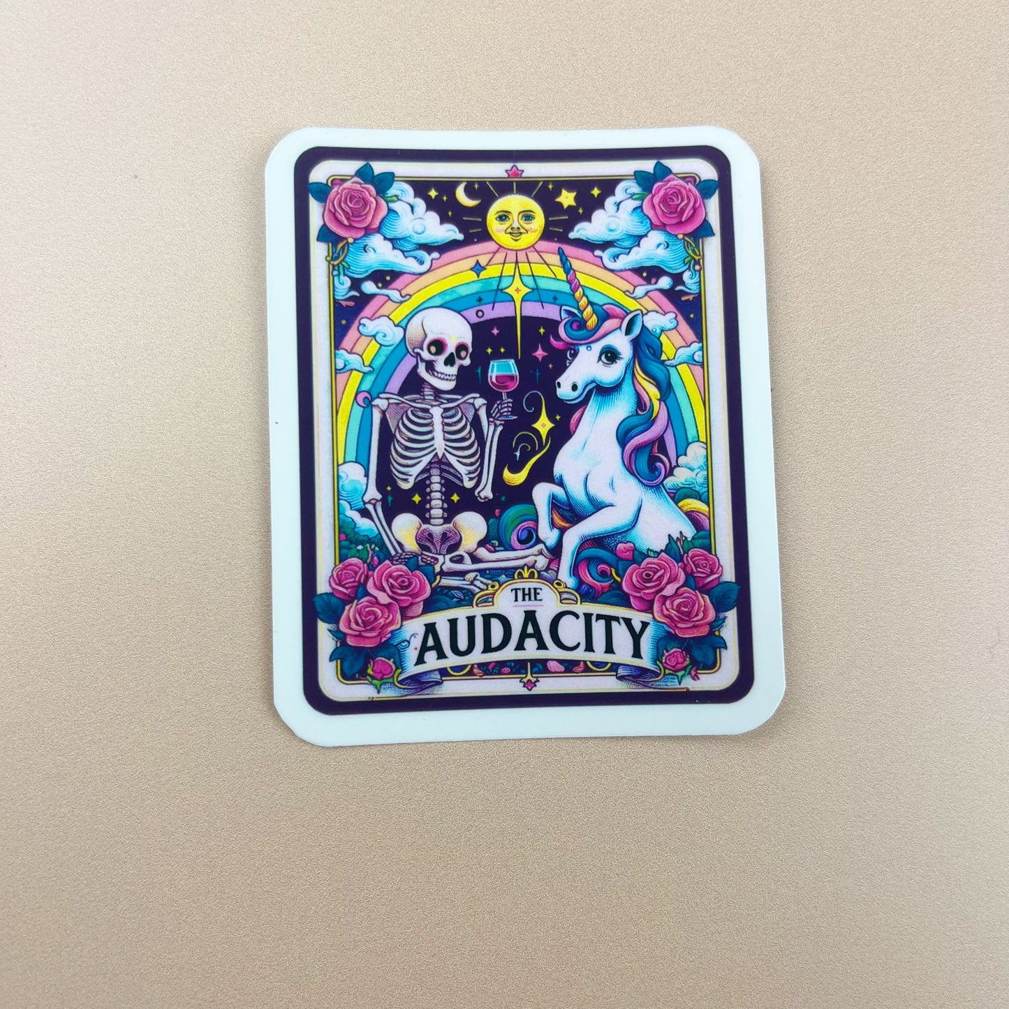 Add some humor to your life with the Audacity Funny Sticker! Perfect for adding personality to laptops, notebooks, and more. Makes a great gift for the quirky and playful person in your life.