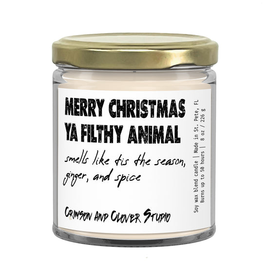 Ignite holiday chaos with the Merry Christmas Ya Filthy Animal Ginger Spice Candle. Bursting with spicy ginger aroma, it’s the perfect sarcastic centerpiece for your festive mischief. Light it up and let the snarky scents roast your holiday spirit—because nothing says ‘Merry Christmas’ like a little wicked wit and a whole lot of spice. Dare to be delightfully unhinged this season!